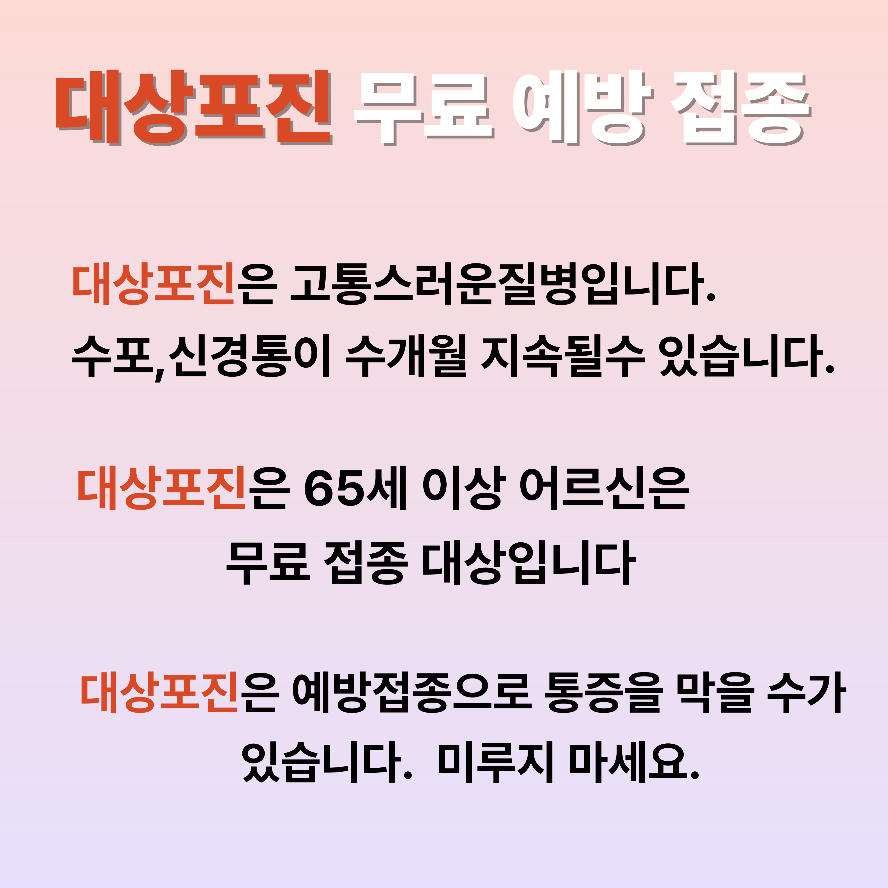 ✅ 60세 이상 어르신, 대상포진 무료접종 기회를 놓치지 마세요