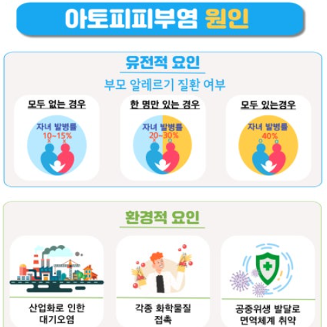- 유전적 소인: 부모 중 한 명이라도 아토피 병력이 있으면 발생 확률이 높아집니다.